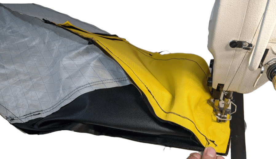 A more abrasion resistant fabric is recommended for the middle strip panel, such as 500D to 1000D Cordura.