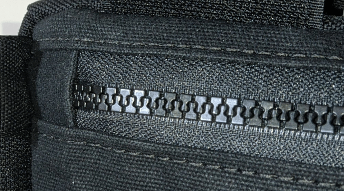 When choosing a zipper, larger the better usually for frame bags which can get a lot of grit and mud in them. Moulded tooth zippers are the most mud resistant, and size #8 to #10 are recommended. Smaller zippers like the standard #5 might be a better option aesthetically however for smaller frame bags.